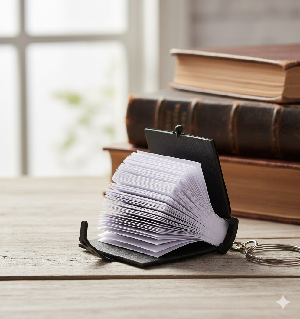It's more than just a keychain—it's a conversation starter and a source of comfort. Its tiny, detailed book shape, complete with a clasp, makes it a unique and cherished keepsake that holds immense spiritual significance.